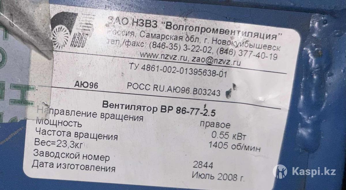 Продам вытяжку улитку. Состояние: почти новое, любые проверки. 1405 об/мин, 220/330 В, 0.55кВт. Цена: 90.000тг, продажа срочная