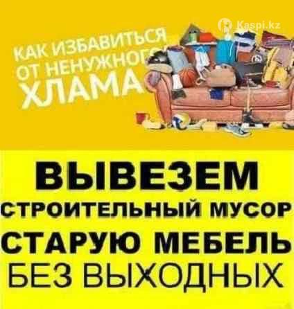 Вывоз строительного мусора Вывоз старой мебели Вывоз веток с дачных участков Вывоз хлама и барахла Вывоз хлама из гаража Уборка и Чистка подвала Вывоз старой бытовой техники Полная очистка квартиры Вывоз мусора с дачи Утилизация мусора, старой мебели Вывоз мусора с грузчиками Вывоз мусора в мешках Вывоз старых окон и дверей Вывоз мусора после пожара, потопа Вывоз мусора после демонтажа Вывоз веток травы и листьев Цена зависит от массы и объема мусора Услуги вывоза мусора в городе Алматы - Алма-атинской области с грузчиками для погрузки мусора в Газель. Экономьте время и силы – мы сделаем все за вас! Оперативный вывоз мусора в день обращения. Мы поможем вам избавиться от мусора в кратчайшие сроки. •Есть свои грузчики •Работаем без выходных 24/7 Опытные грузчики !! вынесем загрузим любой объем!!