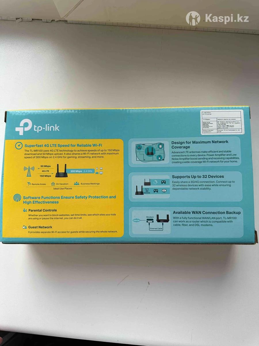 Продам Wi-Fi роутер TP-LINK TL-MR100 в хорошем состоянии почти не пользовались Выставляется сим карта мобильная любого оператора и можно пользоваться интернетом дома