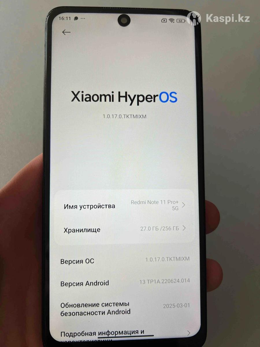 Продаю телефон Xiaomi Redmi Note 11 pro+ 5g. Память 256гб. Стереодинамики JBL. Важно, это версия именно pro+. В отличии от обычной pro версии тут стоит более мощный процессор Dimensity 920 примерно на 30–40% быстрее, чем Snapdragon 695 в Версии Pro. Корпус и стекла в отличном состоянии. Это мощный современный смартфон. Подойдет для игр или других задач. Две симки, оба IMEI верифицированы. Телефон полностью рабочий. Экран менялся на экран очень хорошего качества. Плавный, поддерживает 120Гц. От родного не отличить, просто указываю как есть. Характеристики Процессор мощный Dimenisity 920 8 ядер AMOLED экран 6.67” 120Гц. Камера 108 МП Оперативной памяти много 8+4 Гб Батарея 5000 мАч держит хорошо Поддерживает быструю зарядку до 120 Вт! Стереодинамики JBL Работает быстро Face ID и отпечаток пальца работают Связь, Wi-Fi, Bluetooth без проблем Комплект: провод зарядки и чехол Подойдёт для игр, соцсетей, видео и работы Отличный вариант за свои деньги