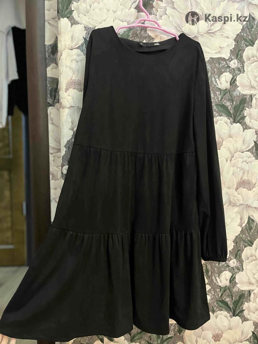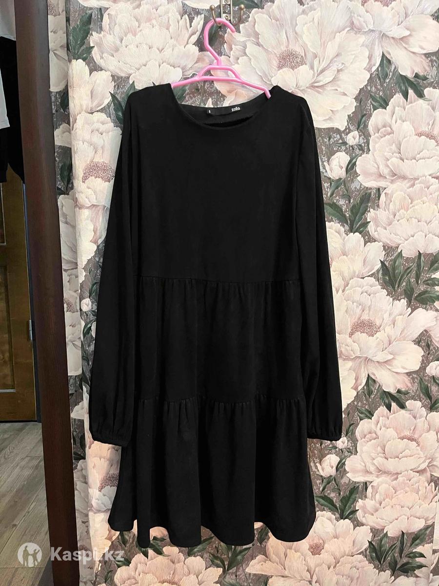 Очаровательное платье бренда Zolla: очень приятный материал, А-силуэт, размер S-М, из текстильной имитации замши, ярусный подол, цвет черный