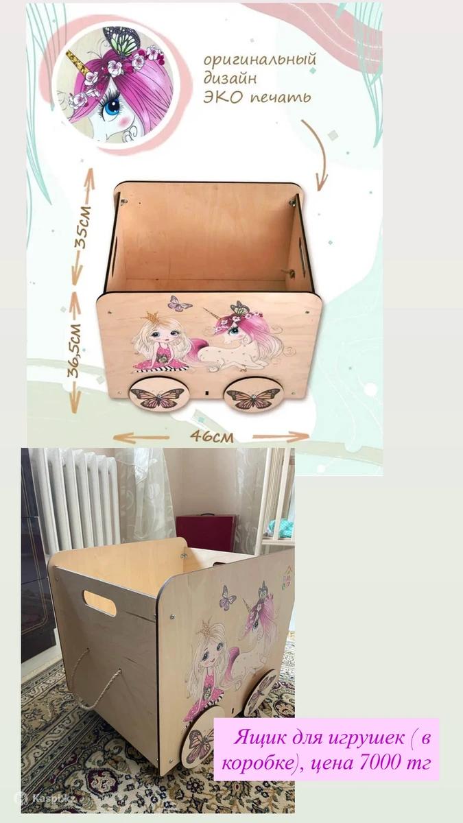 Деревянный ящик для игрушек на колесах. Стильный, сделано из натурального дерева, новый в коробке. Цена в вайлдберрис 13000 тг, моя цена ниже. Можно использовать под дәм на колыбель той, затем использовать для хранения вещей или игрушек.
