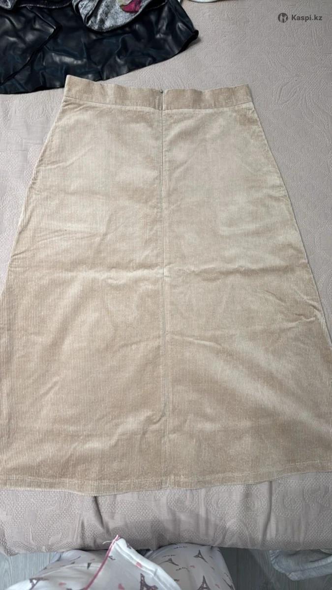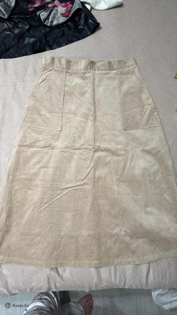 Юбка женская бежевого цвета из вельвета, размер 46,48