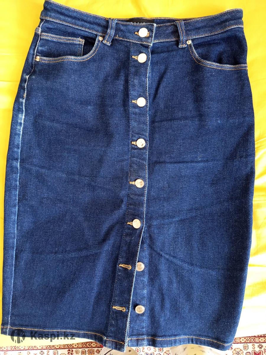 Джинсовая юбка бренд MOHITO.цвет темно синий с золотыми сверкающими пуговицами брендовыми.состояние супер.мало нисили.идет почти на 3 размера.в ткани имеется .надо наверно мерить...