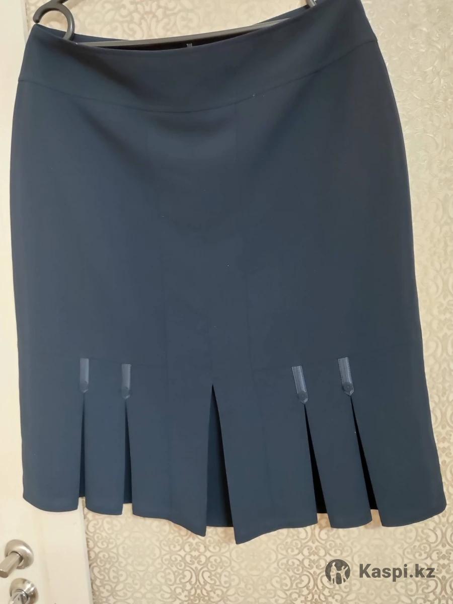 Юбка женская темно-синего цвета, с подкладом. Размер 50-52. Производство Турция, ткань костюмная. Снизу складки. Сзади на поясе замок и снизу закрытая шлица. На юбке написано 46 размер турецкий, советский +6=52. На 50 размер точно подойдет. Длина ниже колена. На фото не видно, но фактически цвет темно-синий.