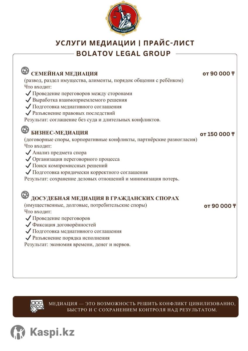 Юридические услуги | Консультация юриста Оказываем профессиональную юридическую помощь по гражданским и административным делам любой сложности. Наши услуги: • Юридические консультации • Составление исков, жалоб, заявлений • Подготовка досудебных претензий • Представительство в суде • Защита прав потребителей • Анализ договоров и юридические заключения • Сопровождение споров и переговоров Работаем быстро, конфиденциально и по закону. Помогаем найти решение даже в сложных ситуациях. 📲 Связь: / звонок 📞 + 💼 Bolatov Legal Group — юридическая помощь, когда она действительно нужна.