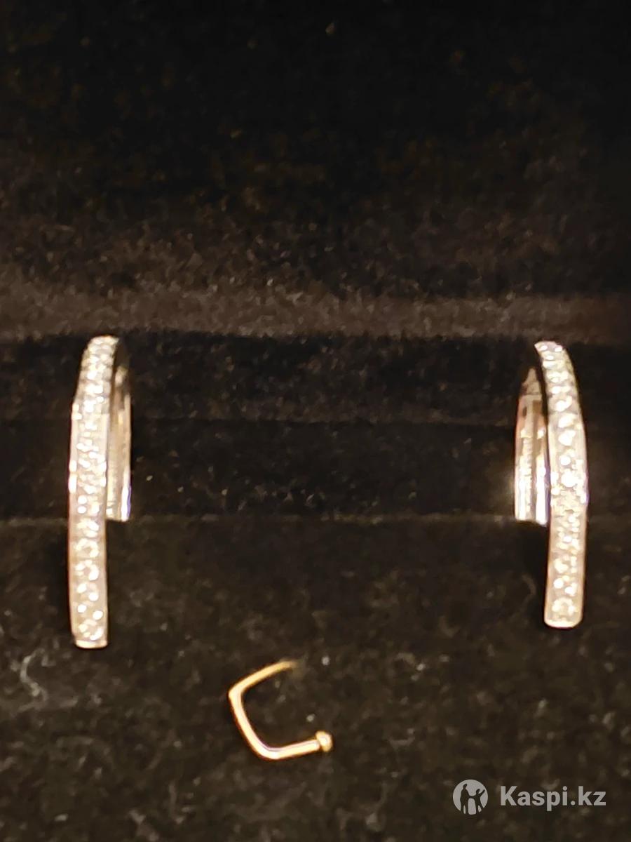 Золотые серьги 750 пробы золота с бриллиантами . Белое золото Италия
