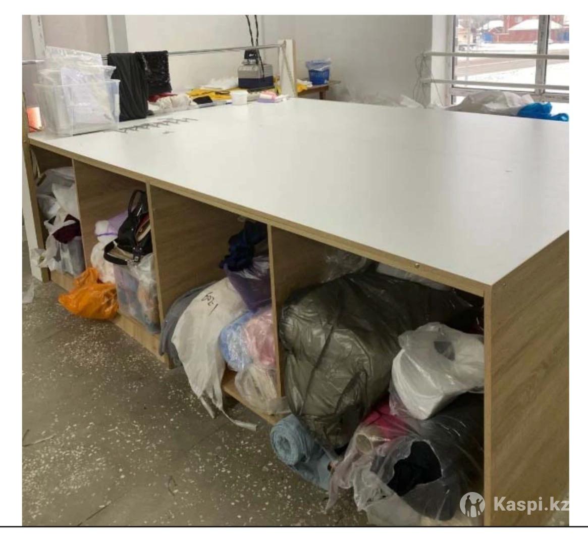 Закроечный стол высота 80см, длина 280см, ширина 220см. Идеальный размер даже для широких тканей Дополнительные выдвижные ящики с другой стороны для мелочевки, железный держатель для рулона ткани