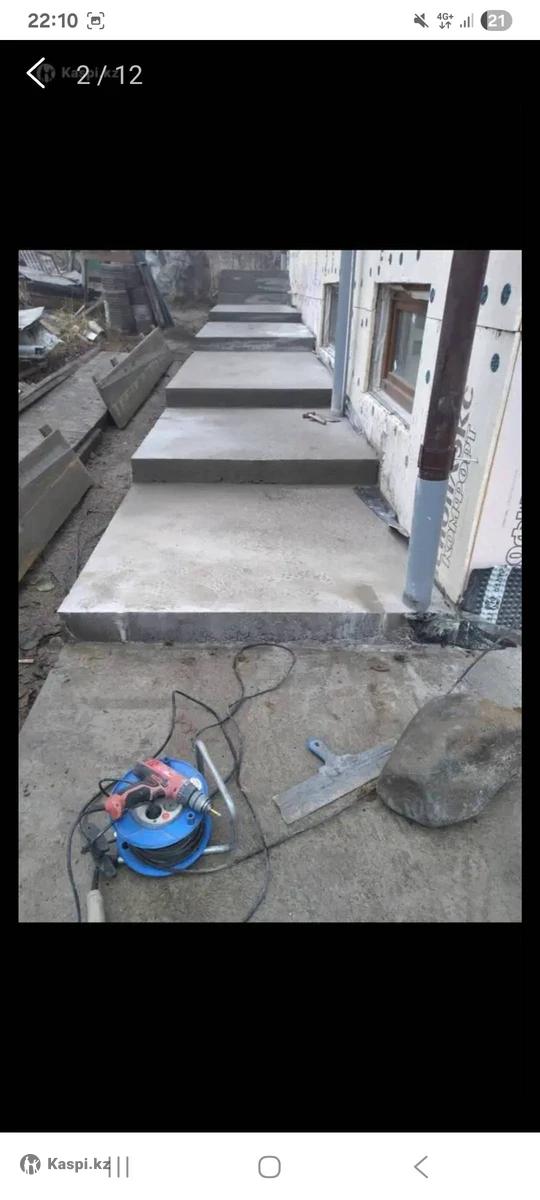 Бетонная стяжка, заливка бетонной отмостки вокруг строения любой толщины и квадратуры.