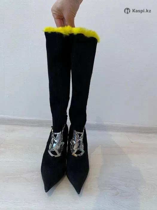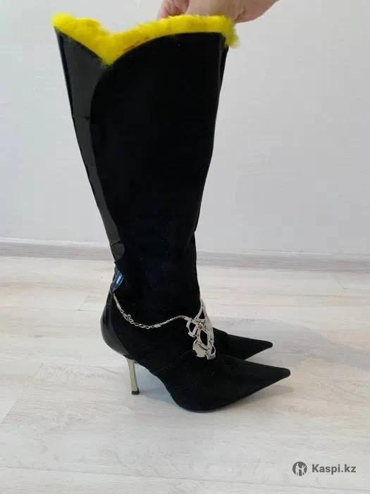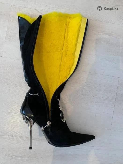 Продам стильные замшевые сапоги MUGLER, первая линия, Made in Italy, размер 38/5, внутри натуральный мех желтого цвета, очень мягкая и приятная, удобная колодка