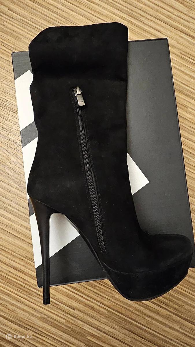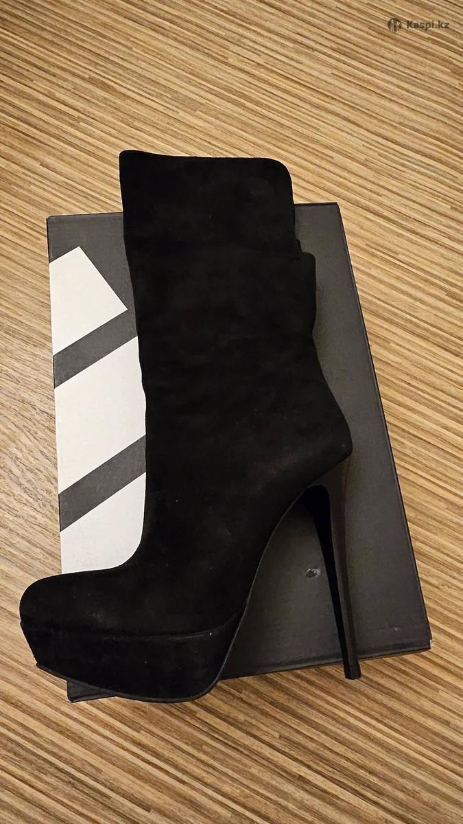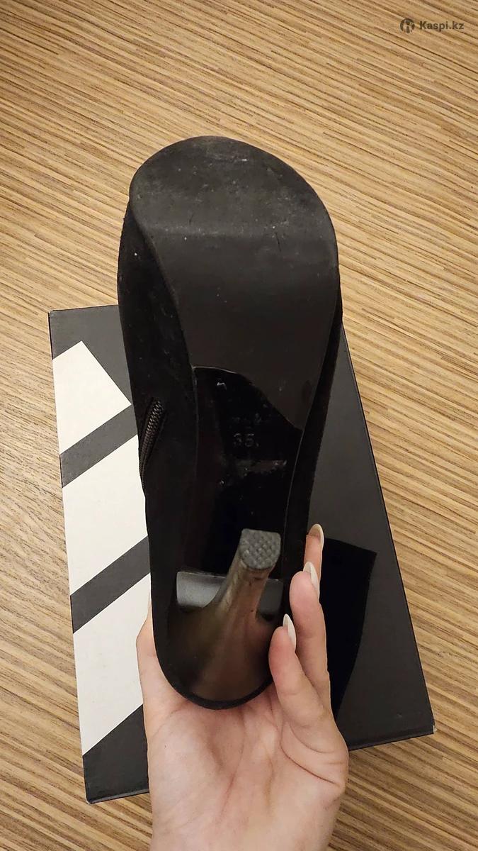 Ботильоны демисезонные, натуральная замша, высокий каблук, подошва на платформе, цвет черный. В хорошем состоянии, есть потертости, не бросаются в глаза. Продаю, после родов не налезают