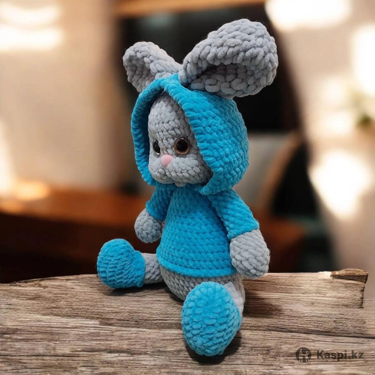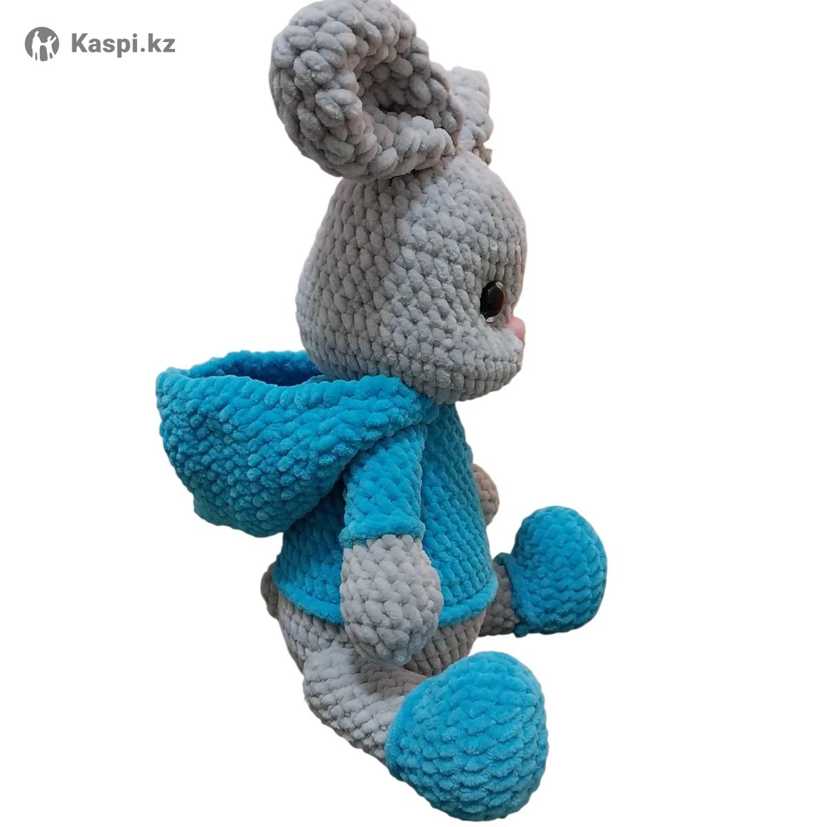 Вязаный большой зайка! Яркий, мягкий готовый к подарку.,