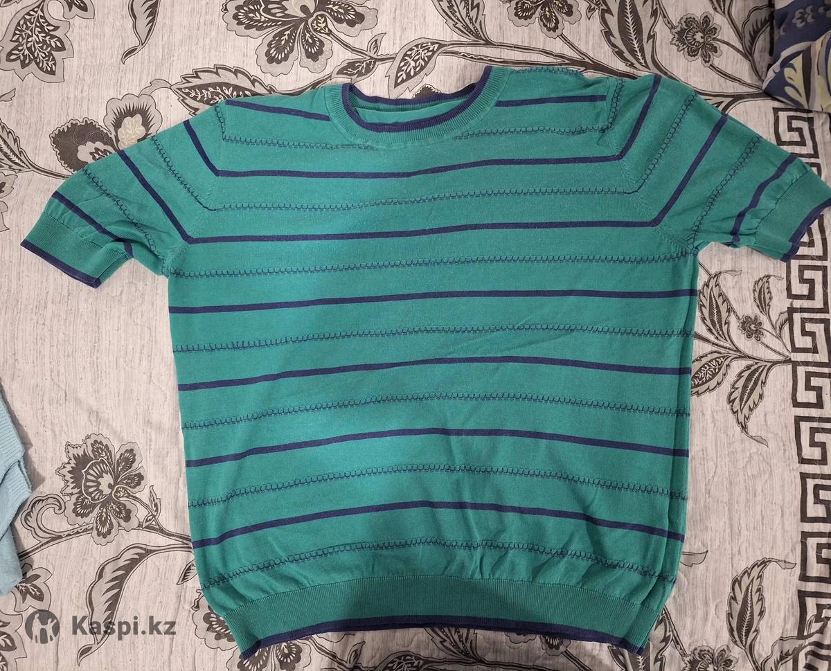 Зеленая кофта с синими полосками