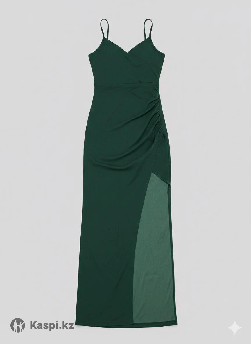 Продам вечернее платье в пол, которое идеально садится по фигуре. Глубокий темно-зеленый (изумрудный) цвет выглядит дорого и благородно. • Фасон: Облегающий крой с акцентом на талии. • Детали: Изящные тонкие бретели, V-образный вырез и высокий разрез по ноге, добавляющий образу дерзости и женственности. • Состояние: Идеальное (надето 1 раз). • Размер: S,M