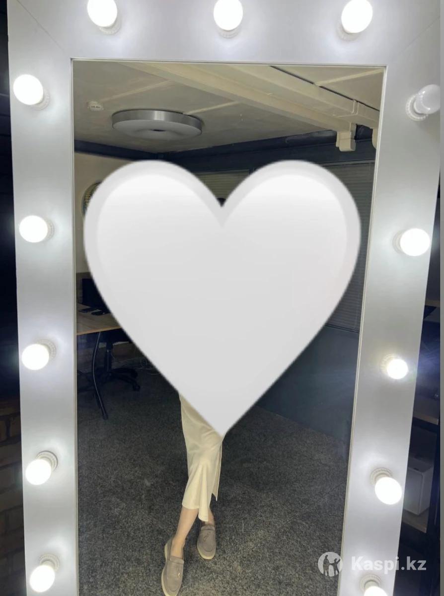 Идеально подойдет для визажистов, салонов красоты, шоурумов, фотостудии или дома. Зеркало с лампочками по периметру, дает красивый и ровный свет для макияжа и фото. Не хватает 2 лампочек (они у меня есть — отдам вместе, нужно просто прикрутить). Покупала для онлайн-магазина, использовалось аккуратно . Состояние хорошее. Высота — 2 м Ширина — 1 м Длина шнура — 2 м На колесах — легко передвигать