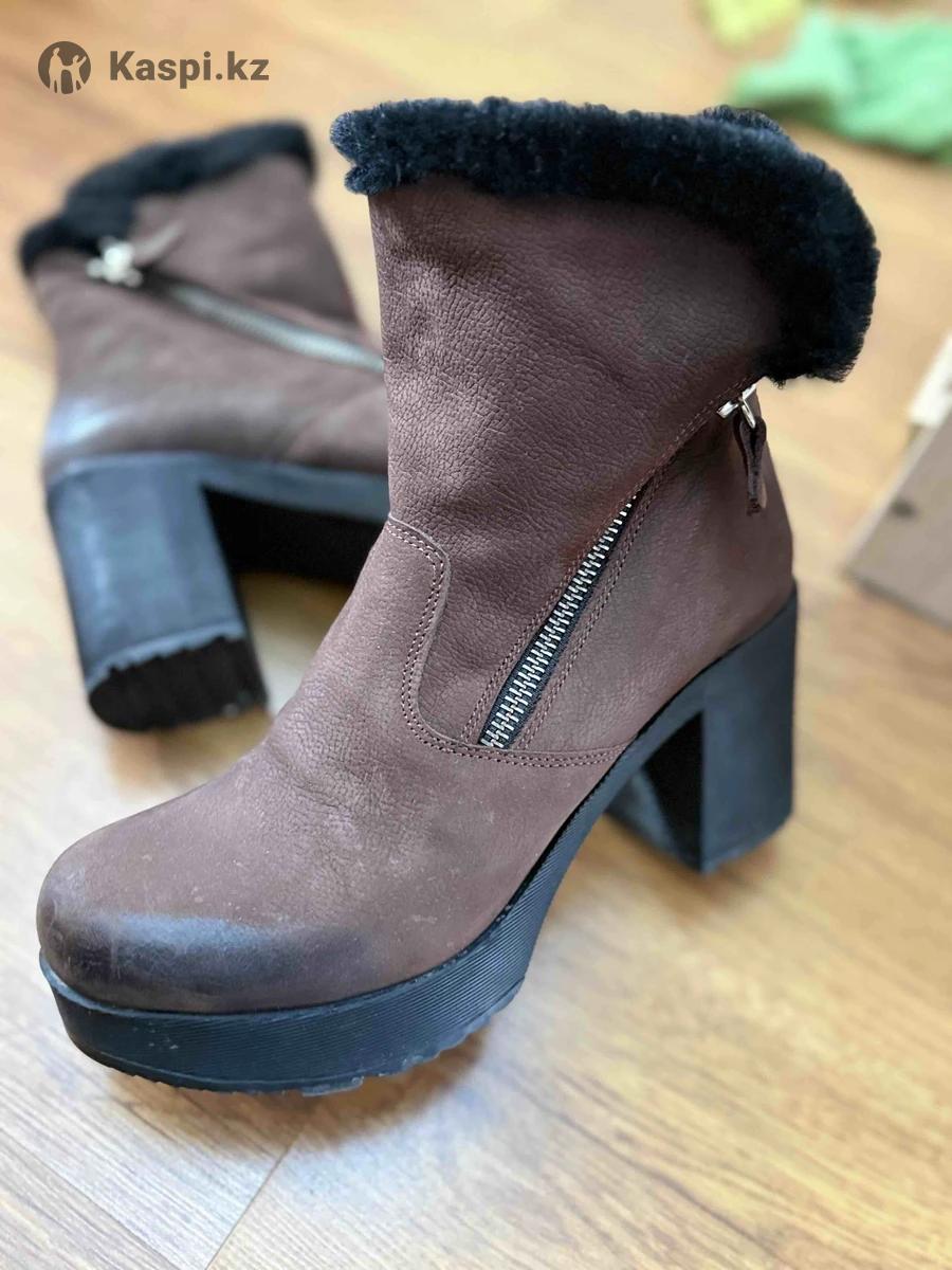 Женские зимние ботинки коричневого цвета, натуральная замша и шерсть , турецкого бренда Amiya, размер 37, ношены 1 раз, на худую узкую ножку,