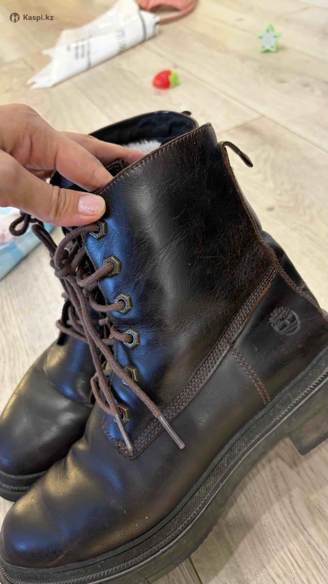 Оригинальные зимние ботинки Timberland Размер: EU 37.5 (US 6.5) Материал: натуральная кожа Внутри теплый утеплитель, подходят на зиму и холодную осень. Состояние: б/у, есть следы носки и небольшие потертости (видно на фото). Подошва крепкая, без трещин, ботинки удобные и очень качественные. Причина продажи: не ношу. Оригинал, не подделка. Возможен небольшой торг.