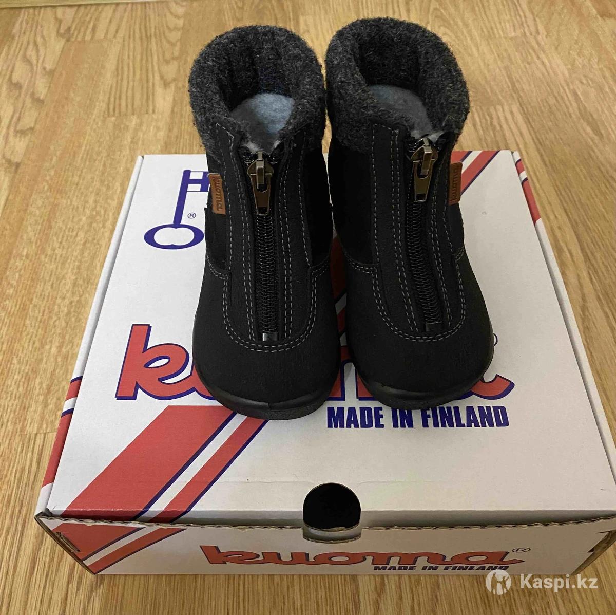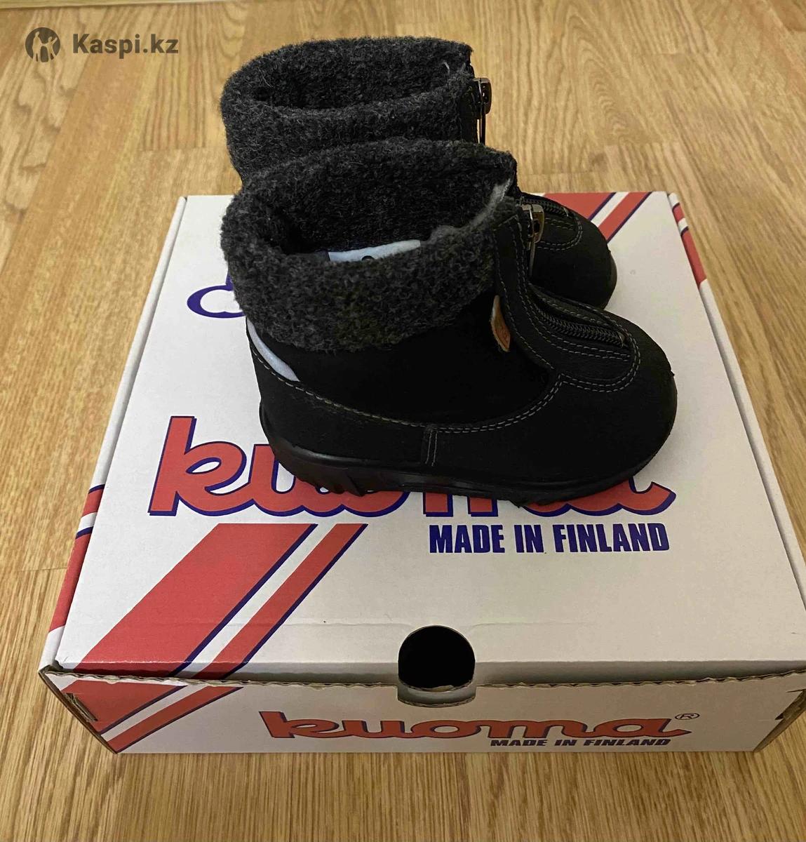 Зимние ботиночки бренда Kuoma (Финляндия), полностью натуральные, очень теплые, на замке, удобно одевать. Размер 20, стелька 13,5 см. Малыш в них сидел в коляске, не успел походить. В идеальном состоянии, как новые.