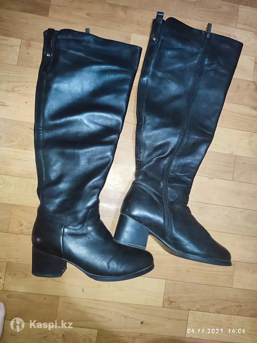 Кожаные сапоги зимние на широкую ногу