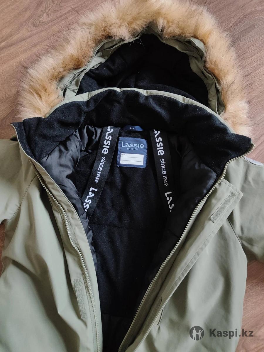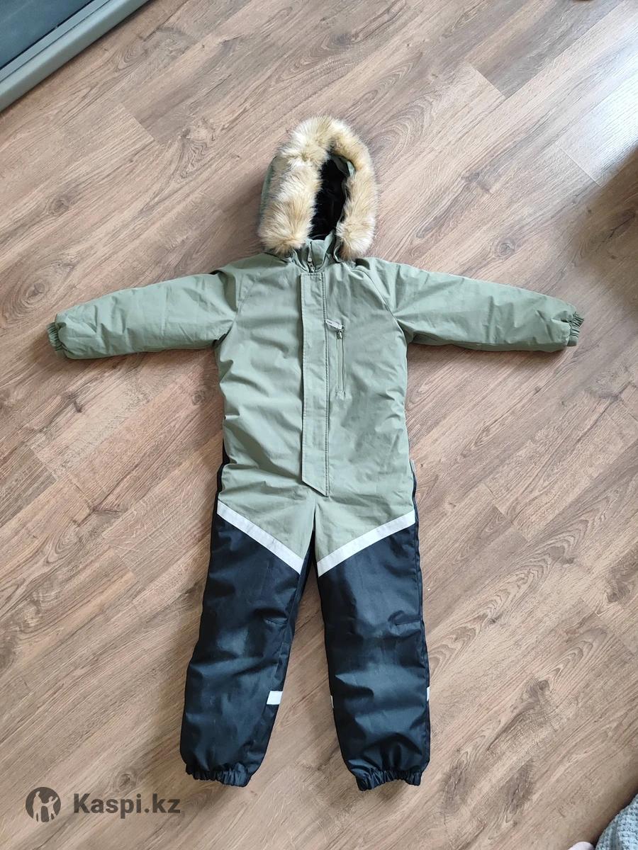 Зимний финский комбинезон Lassie оливкового цвета. До минус 30. Размер 128 (+6 — запас на вырост у Lassie), состояние отличное, ребенок носил ползимы. Стирается в машинке. Искусственный мех отстегивается. В комплекте нет штрипок, можно купить отдельно, если нужны.