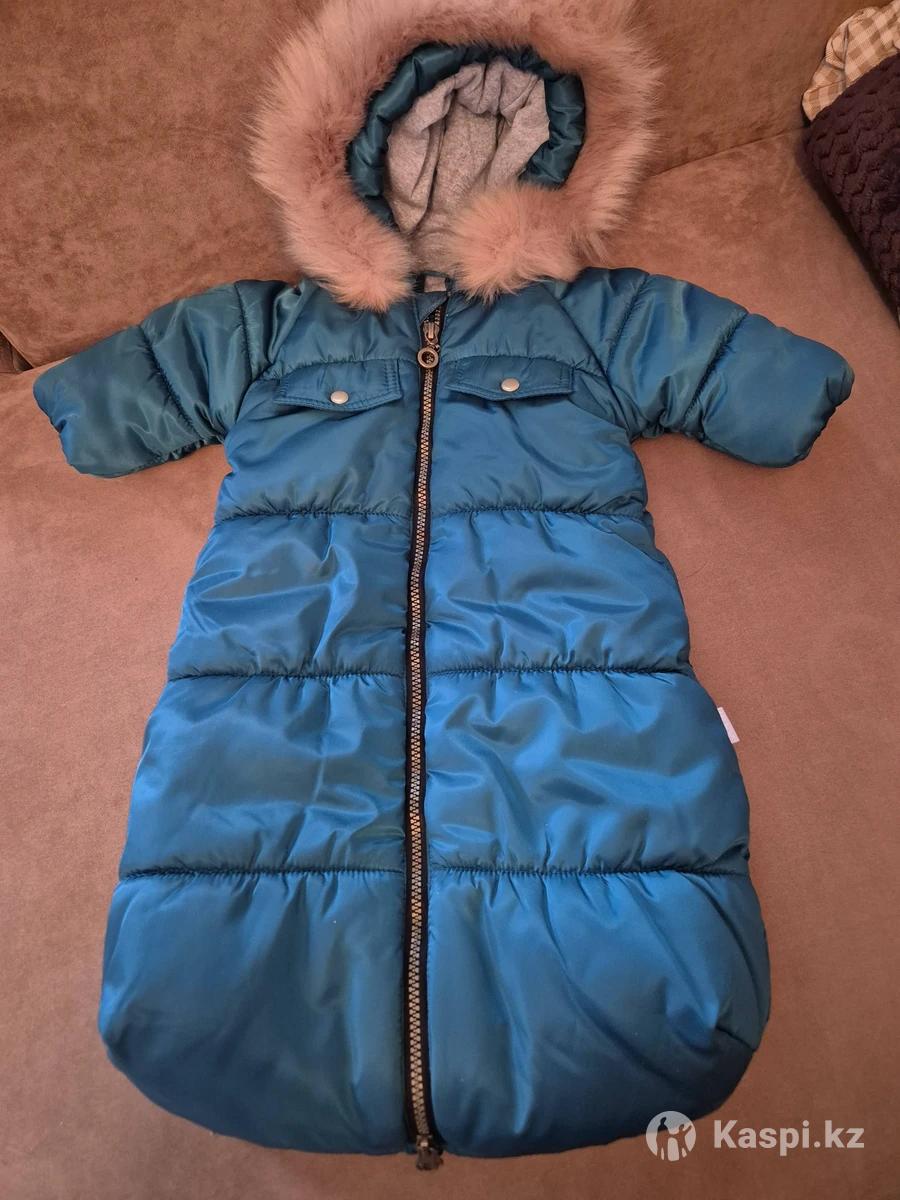 Зимний конверт на выписку и на прогулки для самых маленьких. Опушка отстегивается, сзади есть отверстие для проверки памперса. В отличном состоянии, надевали только на выписку, потом ребенок быстро вырос.