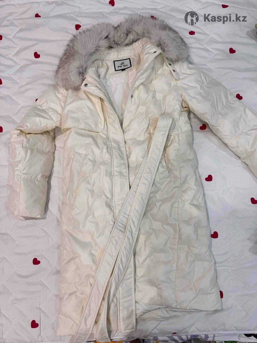 Зимняя куртка в цвете айвори, без капюшона, опушка натуральная, снимается, доина ниже колен, карманы теплые , с двойным замком, очень удобная стильная, теплая зимняя куртка , подходит на s-m (42-44)