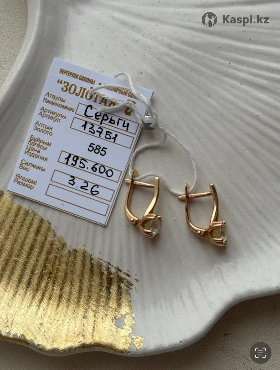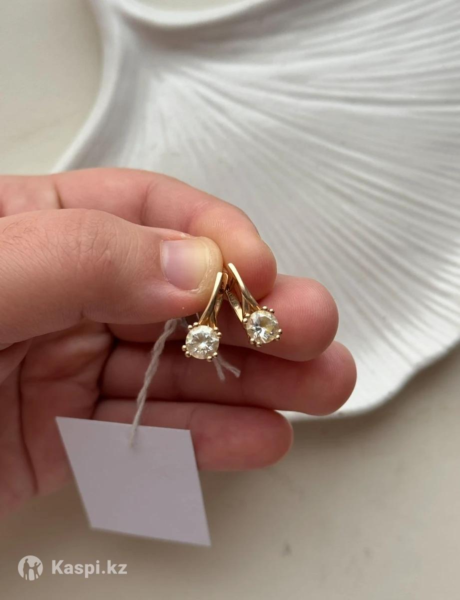 Золотые серьги в хорошем состоянии. Покупали в Казахювелир. Золото 585. 3.2 грамм вес. Камень фианит