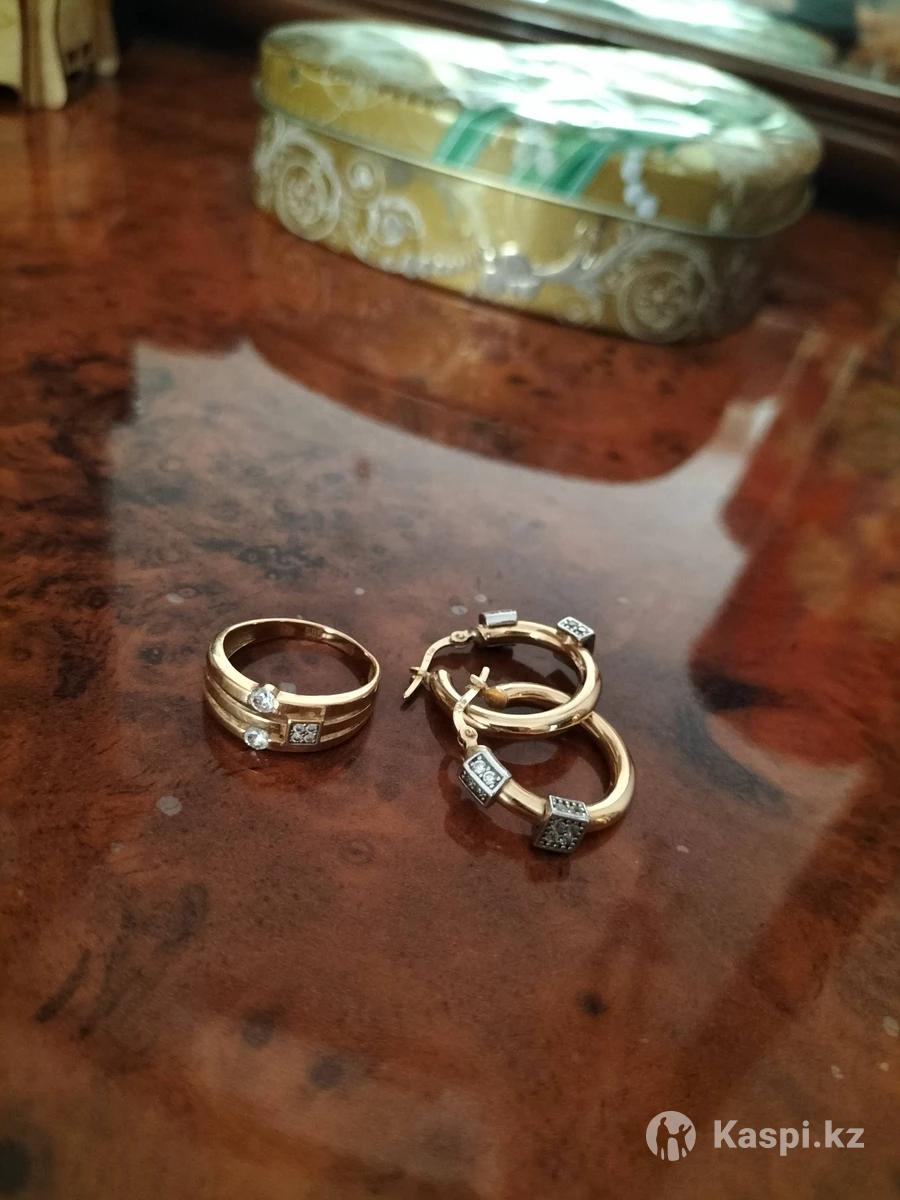 Алтын. Золотое кольцо и серьги, комплект.