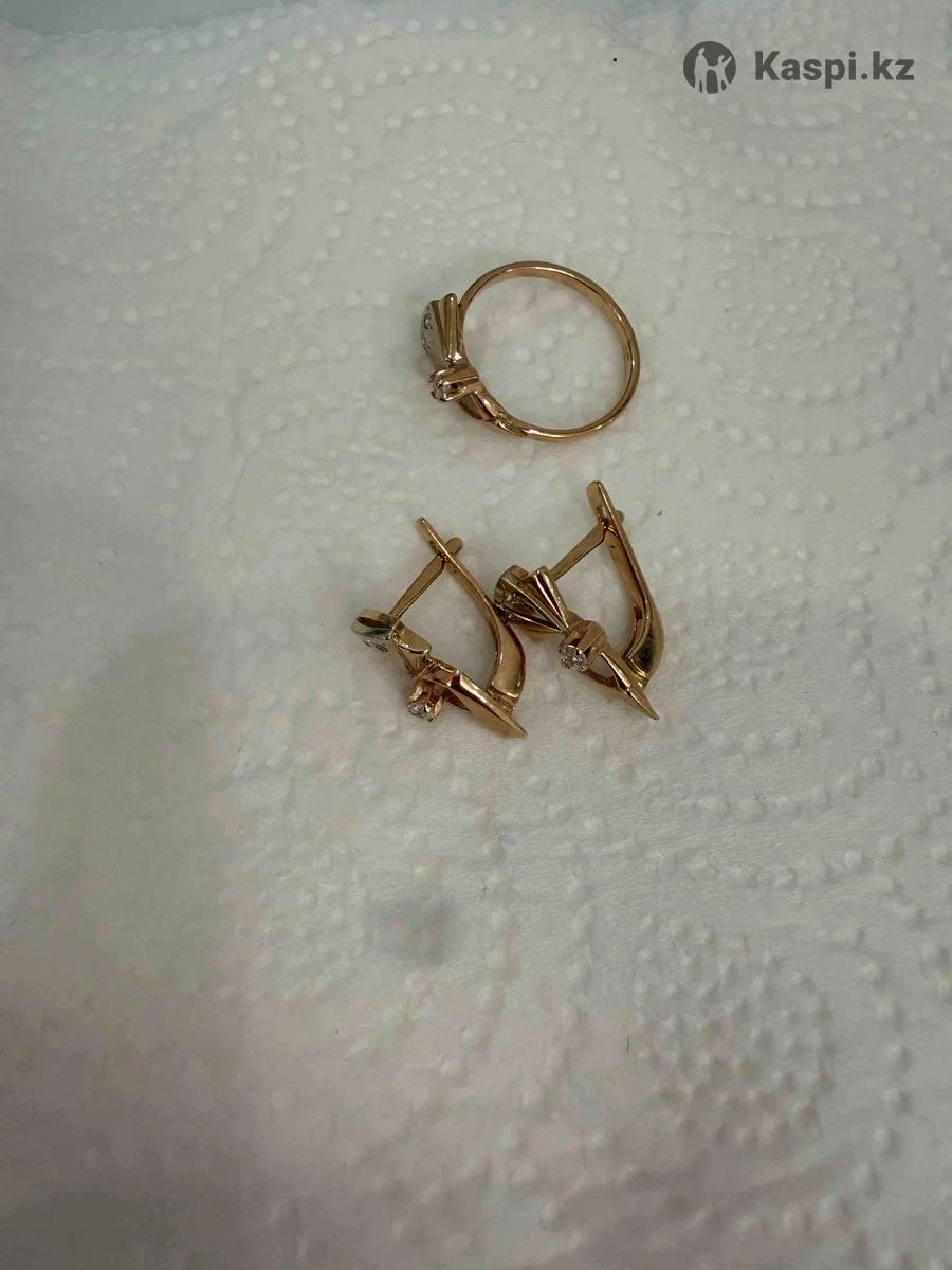 Продам золотой комплект со вставками из белого и красного золота и с мелкими фианитами. Проба: 585. Серьги 4,16 грамм. Кольцо 16 размер, 2,44 грамм. Прекрасный подарок для любимой дочери или девушке, жене!!! Срочно!!!