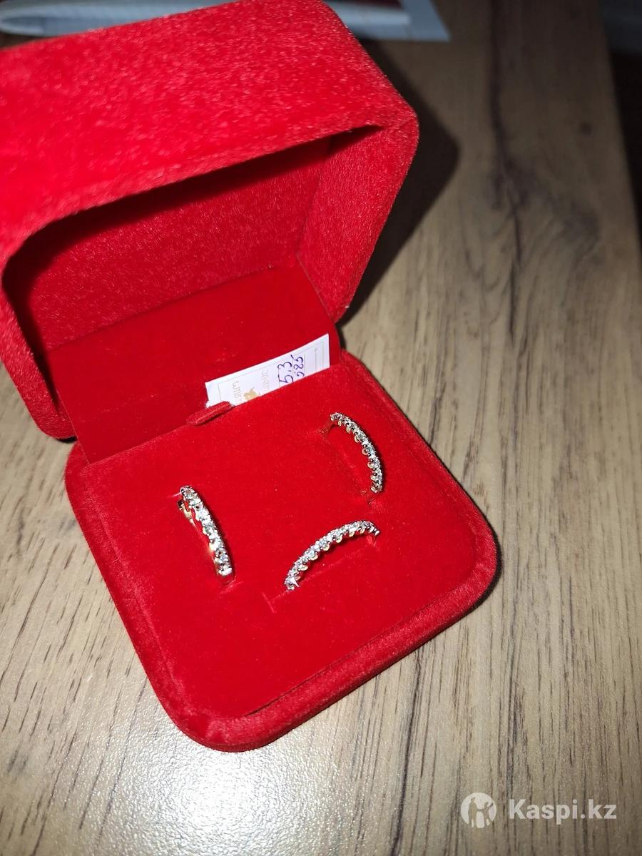 Набор из серег конго и кольца "дорожка" 585 пробы в лимонном золоте с шикарными бриллиантами 57 огранки. Каждый бриллиант по 0.03 ct. Производство Армения. Сертификат есть. Общий вес 5.3 гр. При желании можем проверить у любого ювелира.