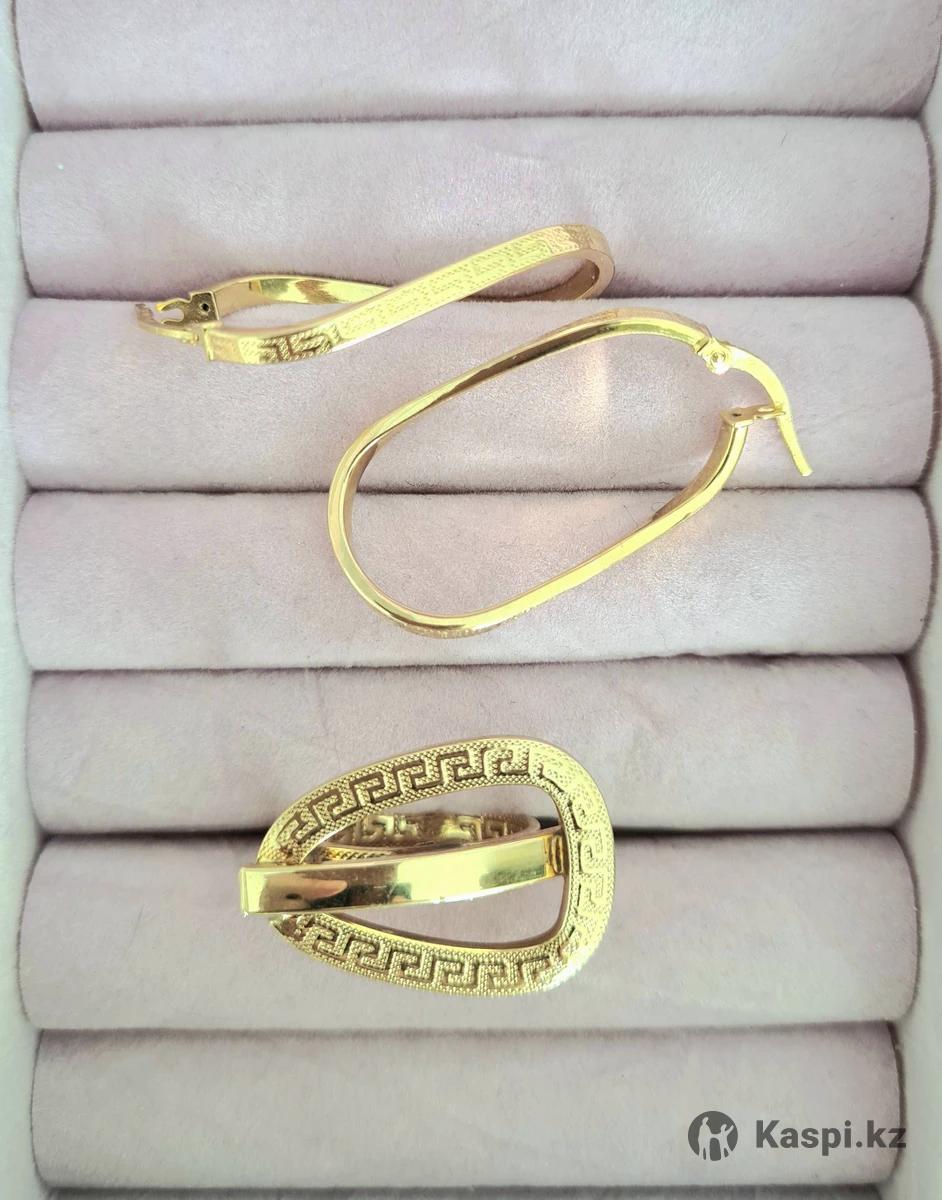 Серьги конго и кольцо с узором меандр versace, жёлтое золото, 585 проба