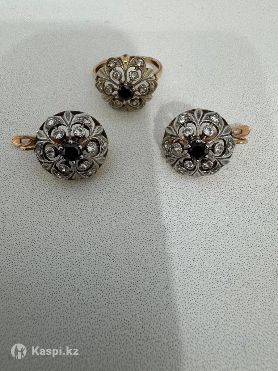 Продам золотой гарнитур, кольцо вес 2,6 размер 19, и серьги вес 6,6 гр. Золото советское. Обмена нет, только за наличные