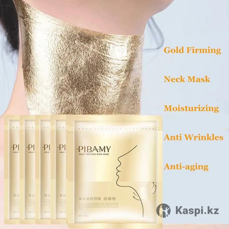 коробка золотых укрепляющих масок для шеи Pibamy. В упаковке 10 масок. Предназначены для увлажнения и питания кожи шеи. Помогают бороться с морщинами и повышают упругость кожи.