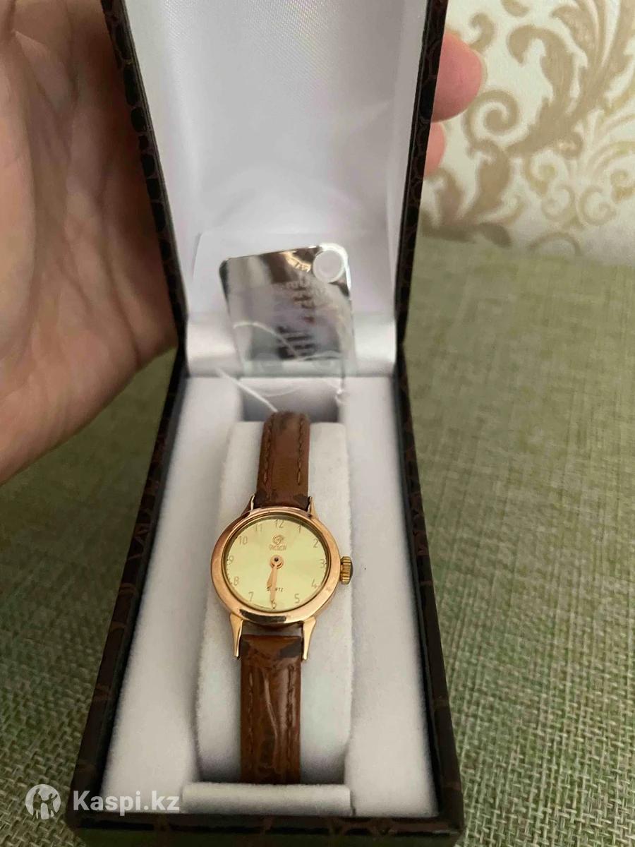 Часы золотые женские , кожаный ремень . На тонкую руку . • Mov. Ronda 763 — швейцарский кварцевый механизм. •Номер 7555 — модель/серия. •сделан Ереванским ювелирным заводом.