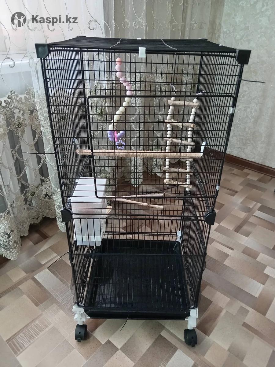 Продам клетку для попугая чёрная на колёсиках. Клетка очень удобная, не тесная. Пользовались 2 недели. В клетки все имеется для птички, жердочки, лесенка, автокормушка. А также сетка для защиты от мусора. Цена за все 17тыс теньге.