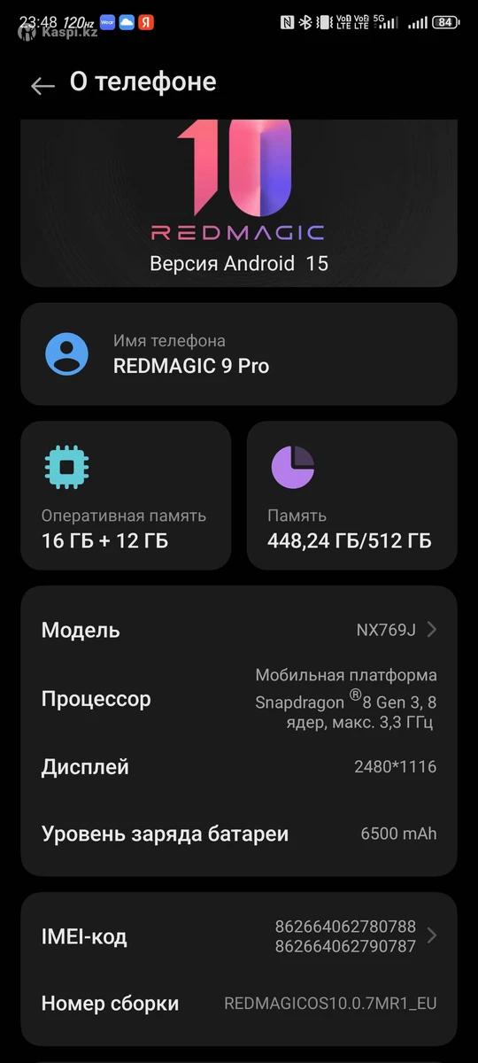 Есть мелкие царапины на экране все оригинал ни че не менян, на корпусе есть царапины остались от чехла не знаю сам по себе так получилось от чехла, могу показать какие царапины на экране есть видео. ❗❗❗Кулер не работает ❗❗❗ Это аппарат для геймеров передний камера под экраном качество не очень можно только на видеозвонки ОБМЕН ЕСТЬ Red Magic 9 Pro — это флагманский игровой смартфон (конец 2023 г.) с процессором Snapdragon 8 Gen 3, активным охлаждением (вентилятор), батареей 6500 мАч и 6.8-дюймовым AMOLED экраном 120 Гц без вырезов. Модель отличается плоской задней панелью, тройной камерой 50+50+2 Мп и высокой производительностью. Основные характеристики: Процессор: Qualcomm Snapdragon 8 Gen 3 (3.3 ГГц). Дисплей: 6.8″ AMOLED, разрешение 2480x1116 (400 ppi), частота 120 Гц, яркость до 1600 нит. Память: 12/16 ГБ оперативной памяти LPDDR5X и 256/512 ГБ постоянной памяти UFS 4.0. Аккумулятор: 6500 мАч, быстрая проводная зарядка 80 Вт (беспроводная отсутствует). Камеры: Основная 50 Мп (OIS, Samsung GN5), ультраширокоугольная 50 Мп, макро 2 Мп. Фронтальная камера 16 Мп скрыта под экраном. Охлаждение: Встроенный активный вентилятор (RGB-подсветка в некоторых версиях). ОС: Android 14 с оболочкой RedMagic OS 9.0. Корпус: Металлическая рама, стекло, вес 229 г, толщина 8.9 мм. Связь: 5G, Wi-Fi 7, Bluetooth 5.3, NFC, USB-C 3.2.